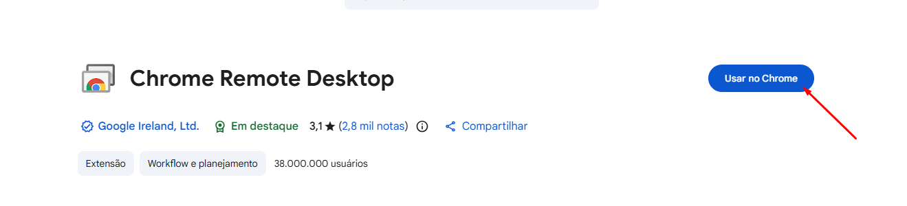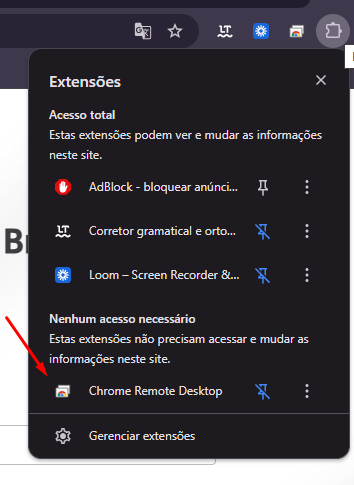 4. Clique na extensão para abrir a área de trabalho remota do Google Chrome ou clique AQUI;