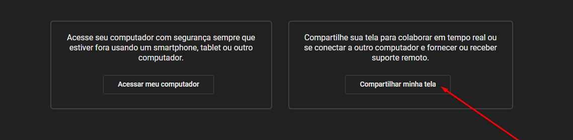 5. Na área de trabalho remota, selecione 'Compartilhar minha tela';