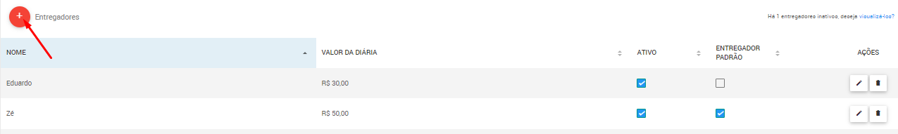 OBS: Caso haja alguma venda já relacionada àquele entregador, ele não será excluído, mas sim inativado.
