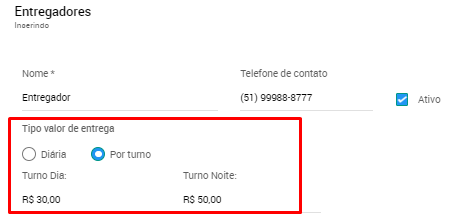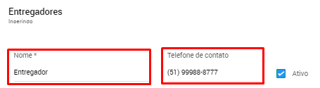3. Inclua as informações cadastrais da pessoa entregadora, como 'Nome' e 'Telefone de contato';