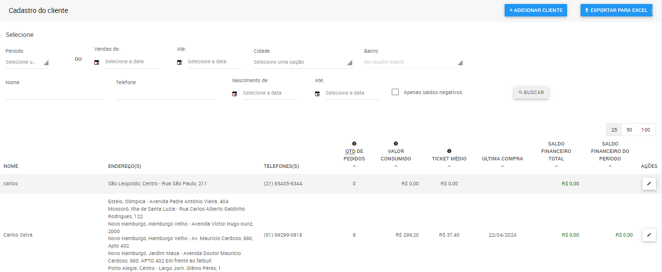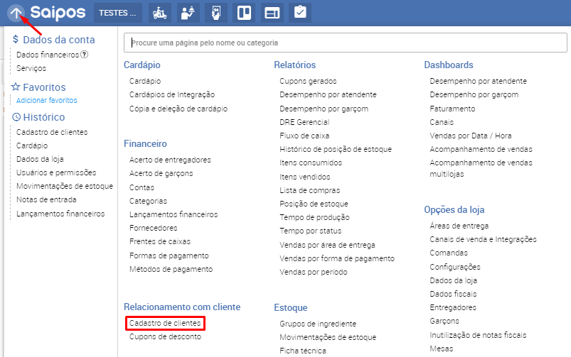 1. Acesse o Menu > Cadastro de clientes;