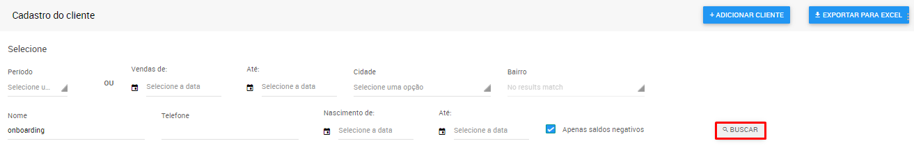 5. Em seguida, com todos os filtros desejados clique em 'Buscar';