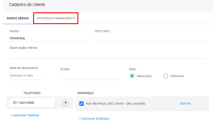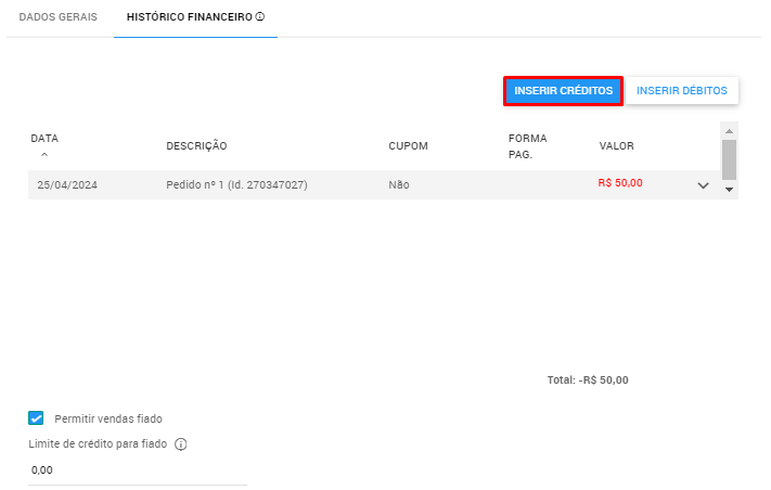 8. Na janela que abrir, clique na aba 'HISTÓRICO FINANCEIRO';
