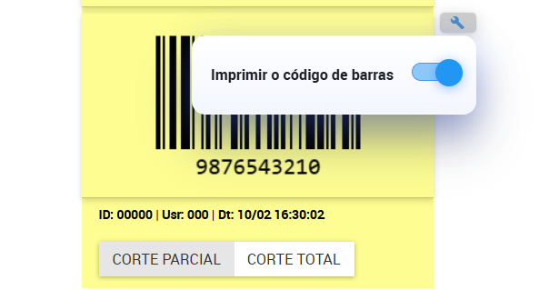 8. Clicando no ícone de chave-inglesa, você tem a opção de habilitar a impressão do código interno do item caso o tenha cadastrado no produto;