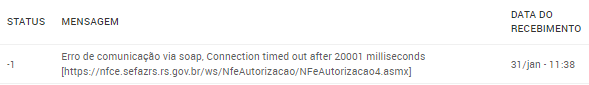 Este erro geralmente ocorre porque o sistema entrou em contingência, devido a uma instabilidade temporária na comunicação com a SEFAZ. Nesses casos, o cupom costuma ser reprocessado automaticamente durante a madrugada, sem necessidade de ação. Caso no dia seguinte ele ainda não tenha sido autorizado, basta entrar em contato com o Suporte Saipos para podermos orientar os próximos passos.