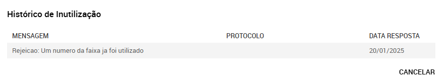 Esse erro ocorre quando se tenta inutilizar um número de nota fiscal que já foi autorizado, cancelado ou denegado, pois não há como inutilizar uma numeração que já foi utilizada. Você pode realizar o cancelamento do cupom em até 30 minutos ou verificar com a contabilidade se é possível cancelar a numeração junto a SEFAZ após esse período.