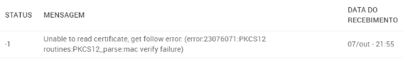 - Impossível ler o certificado, ocorreu o seguinte erro: (error:23076071 :PKCS12 routines: PKCS12_parse:mac verify failure)