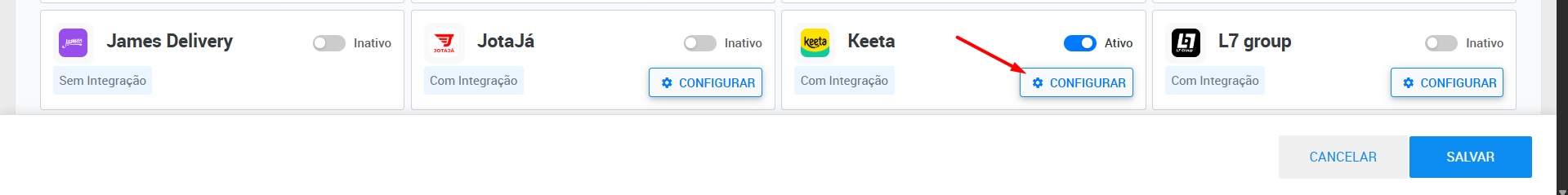 2. Na Saipos, vá em Menu > Canais de venda e integrações > Configurar;